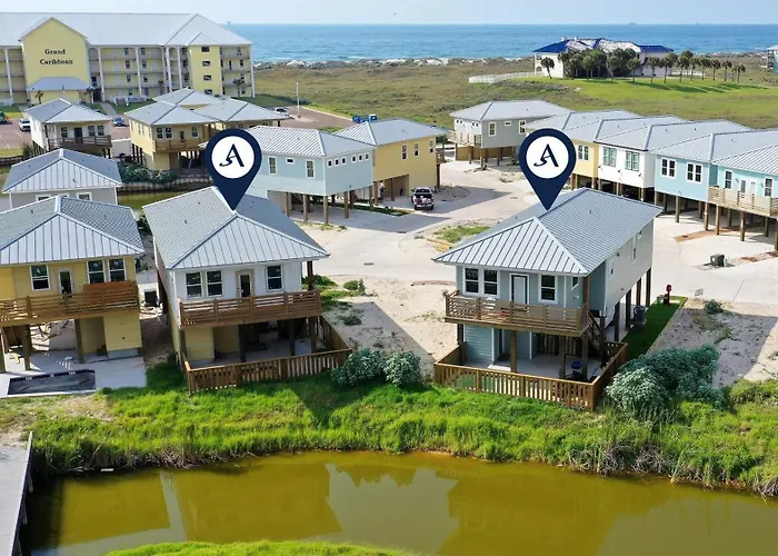 Ao ficar em Sleeps 20 2 Homes W Beach Boardwalk Access Water Canal Views Priv Pools Port Aransas, os hóspedes podem visitar Port Aransas Mile Marker 39, que está a 25 minutos de distância a pé.